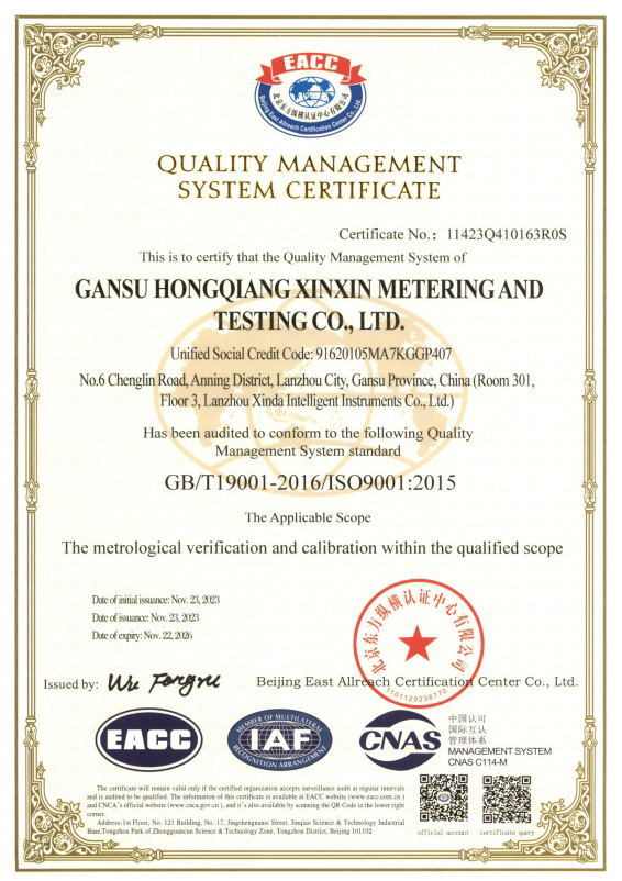 祝賀甘肅宏強(qiáng)新鑫計(jì)量檢測有限公司通過三體系認(rèn)證