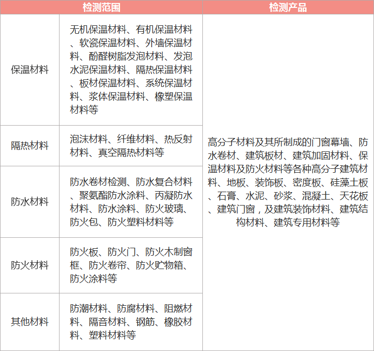 導(dǎo)熱系數(shù)、傳熱系數(shù)、熱阻、透濕性能、密度、吸水率、含水率、尺寸穩(wěn)定性、彎曲性能、壓縮性能、拉伸性能、壓縮..變形、撕裂強度、燃燒性能、吸聲性能、隔聲性能、相變溫度、抗風(fēng)壓性能、可靠性試驗、耐候性檢測、老化檢測、環(huán)保檢測、含量測定、有毒有害檢測等。 |